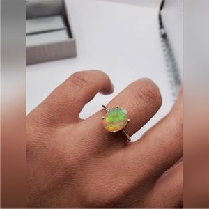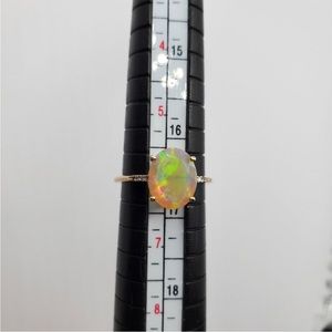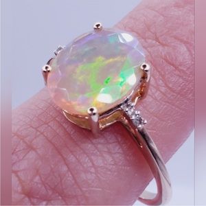 10k Solid Yellow Gold 2.50 Carat Ethiopian Faceted Oval Opal & Diamond Ring
