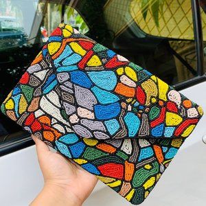 Stained Glass Window Glass Seed Beaded Colorful Crossbody Clutch Handbag NEW