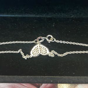 42 genuine pavé set diamonds into a 14k white gold curved heart shape setting on a 14k white gold chain.