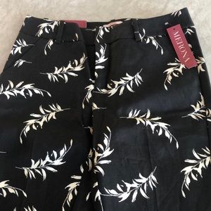 Merona Woman’s Classic Ankle Black White Leaf Print Slim Fit Pants Size 2