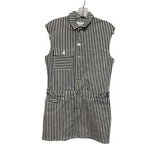 Current/Elliott Medium Black and White Striped Sleeveless Denim Mini Dress EUC