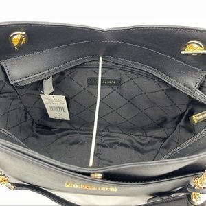 Michael Kors Large X Chain Shoulder Tote Bag Rich Black Leather