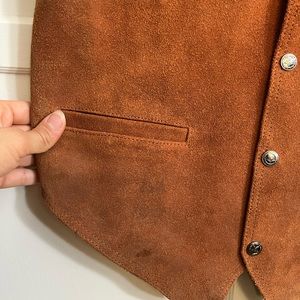 Made in India leather vest. Perfect for Western looks. Star snap buttons. Leather has some wear and discoloration. Please see pictures for a better look. Size L