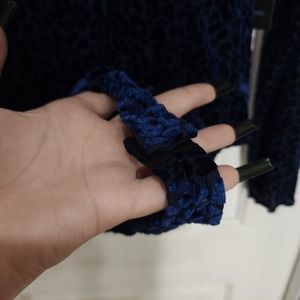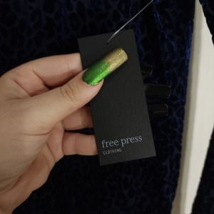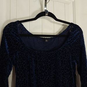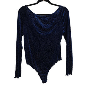 Free Press Bodysuit Womens L Blue Velvet Burnout Leopard Long Sleeve Stretch New