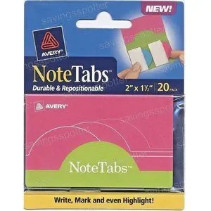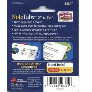 NoteTabs are made of durable film material with a paper tab overlay and round edge.