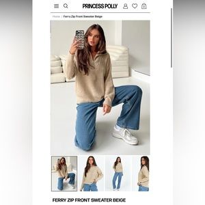 Princess Polly ferry zip front sweater beige