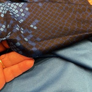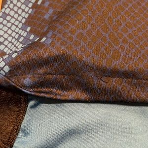 Polyester. Embroidered. Short sleeve. Machine wash cold. Have problem in the bottom. The thread out. Look at the photos. Non smoking home. Box A18.