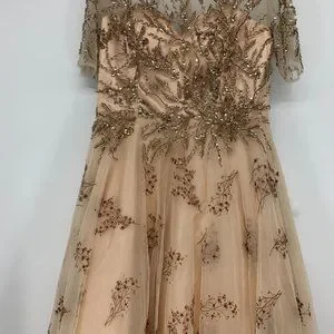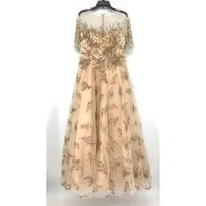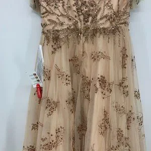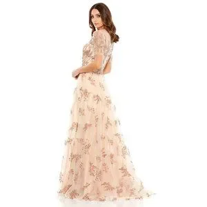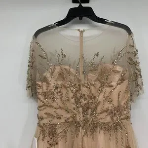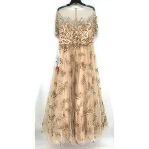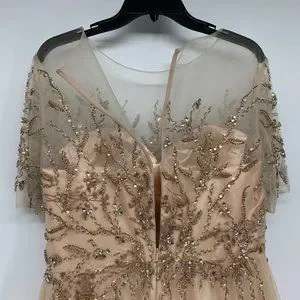 Mac Duggal Dress 79317 Womens Size 12 Champagne High Neck Cap Sleeve Embellished Illusion Gown. New with tags and return tag. Back zipper. Inside lining. $998