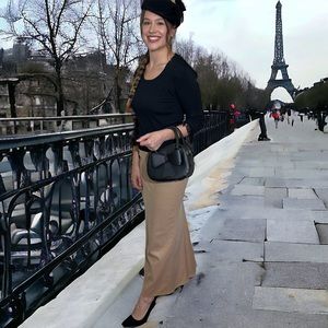 Listings: Tara Jarmon maxi skirt, and [all with bows] beret/fascinator, leather satchel & suede heels. BUNDLE, OFFER & SAVE!