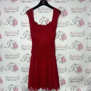 Jessie girl dress sparkly glitter red fairy whimsical cinched draped cute Y2K size 16 girls can fit XS / s women. Stunning like new sparkly dress. Super stretchy. Cutest sleeves. Stunning and so flattering!