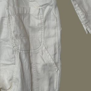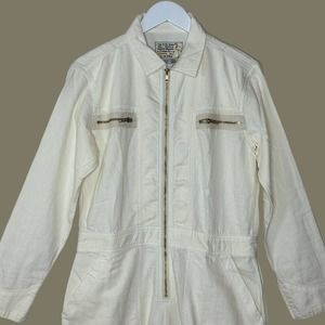 Sandrine Rose Oversized Cotton/Linen Zip Jumpsuit Snow Women S NWT Chest Pocket