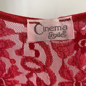 Vintage Cinema Etoile Red Sheer Lace Nylon Babydoll Mini Nightgown Size Medium