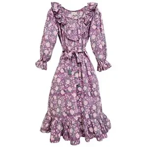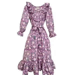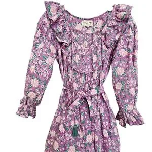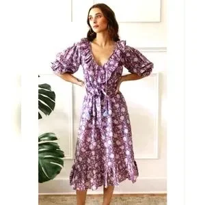 Nwot Mille Resort & Travel Lavender June Floral Longsleeve Ruffled Midi Dress