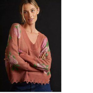 By Anthropologie Drop Shoulder V-Neck Sweater new with tag size small