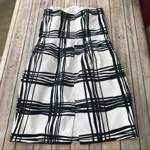 This dress is for the cosmopolitan lady! You’ll fit in (or stand out!) anywhere in the world in this white dress with black modern lines on it. This dress has boning in the top to hold it up, and it is fully lined. It also has a zipper up the back.