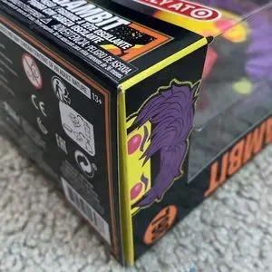 The Gambit box contains areas of corner damage, including 2 wrinkled corners. The Magneto Pop has a paint blemish on the face while the box has a ding on the lower back and areas of corner flaws. The Rogue box has creasing on the lower back. The Black Panther Pop Bundle is factory sealed (plastic wrapped).