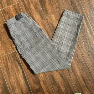 EUC American Eagle Stretch Mom Jean in black and white plaid, size 6. Waist measures approx 13.5” flat but does stretch. Length approx 37.25” with tapered ankle. No stains, tears or rips, smoke free home.