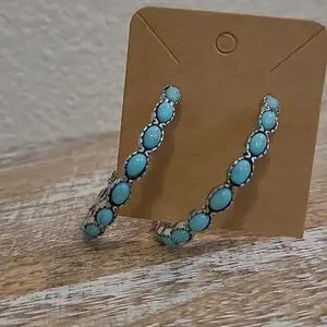 New Pretty turquoise & silver colored hoop dangle earrings. Western country flair. Would make a Nice gift! Lightweight, not heavy.