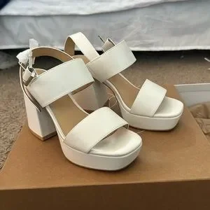 Cute little white heels, chunky heel very comfortable. Brand new never worn before.
