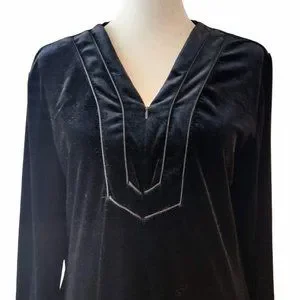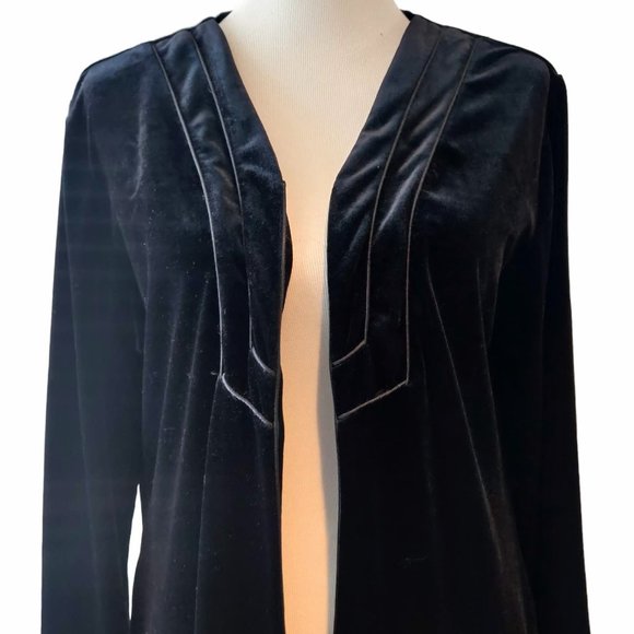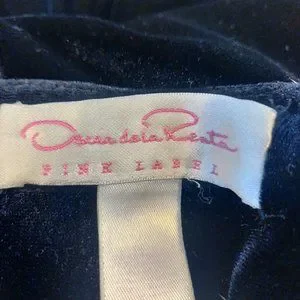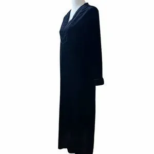 Oscar De La Renta Womens L Pink Label Black Velour 1/2 Zip Long House Sleep Robe