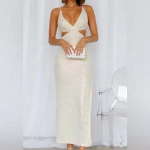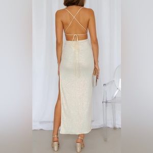 Never worn. Create The Spell Midi Dress Cream Sequin Hello Molly. Size: Small