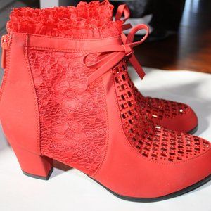 The most comfortable little boots, lots of red lace, and the perfect size heel. Dresses up any outfit short skirts or dresses become very classy when you put these little boots on. Very sexy. Be