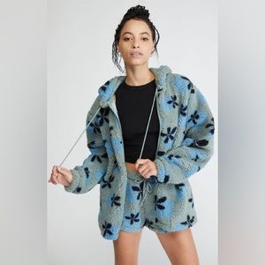 PACSUN Groovy Floral Full Zip Sherpa Hoodie