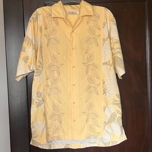 Tommy Bahama 100% Silk Embroidered Tropical Leaf Shirt