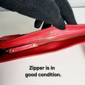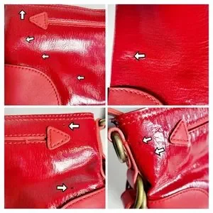 - Red patent leather with tonal leather trim (Genuine Leather)