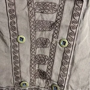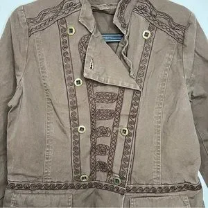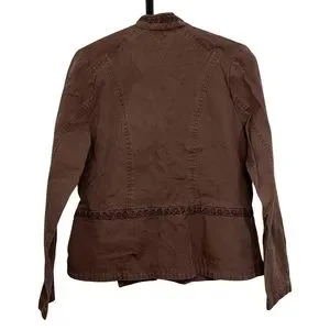 Vintage y2k Ruff Hewn jacket in color brown. Two front pockets. Slightly snatched at waistline. The actual color is slightly lighter than the white background pictures, but darker then the detailed pictures. Slight fading but overall in excellent vintage condition.