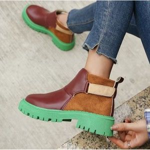 Elevate your shoe game with these unique platform ankle boots! These boots feature a round toe design and splicing lug sole, providing not only comfort but also style. The synthetic leather upper material is durable and easy to maintain, making it perfect for everyday wear.