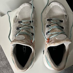 @piper1999 Good afternoon! The shoes aren’t actually dirty or discolored; perhaps hard to tell from the photos but the fabric around the heel/ankle/tongue of the shoe is a tan and cream pattern. Conversely, the soles could likely be whitened a bit with a magic eraser. I find the Metcon Free to be a fairly flexible shoe overall. This pair was only ever gently used so not heavily broken in or conforming to another individual’s foot size or shape. I hope that helps!