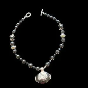 Women’s Necklace -Black Onyx/Sterling Silver Pendant & Beads -Substantial Choker