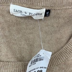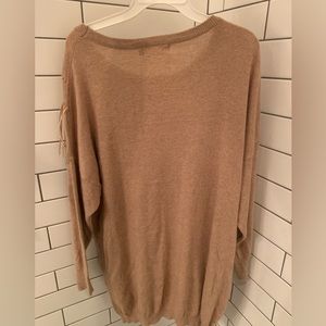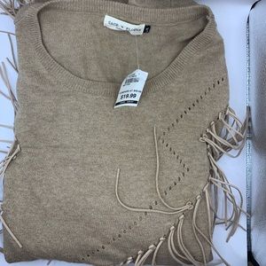 XL women’s sweater in Beige. Has pleather tassel accents on the front.