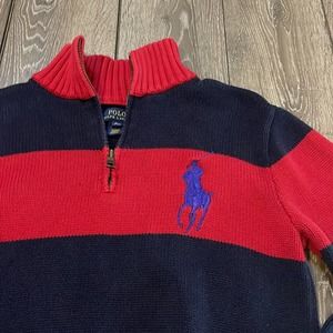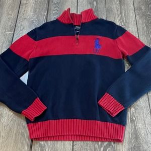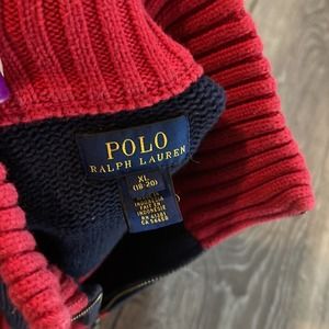 Polo by Ralph Lauren Red and Blue Rugby Striped Sweater Pullover Youth XL 18-20