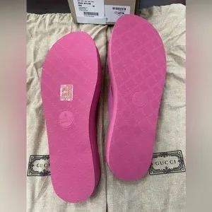 Brand new with complete packaging hot pink Gucci GG Marmont sandals .