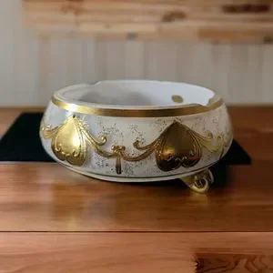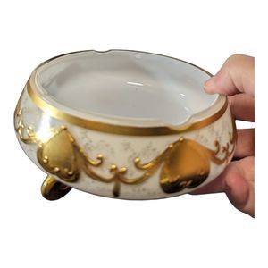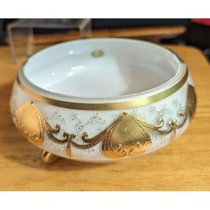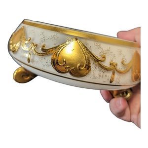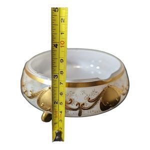 VTG Bohemian Czech Opaline Glass Bowl with Gold Motif Smoke Bowl/Candy Bowl READ See all photos for measurements and condition A few chips on rim Gold is wearing off on bottom of feet