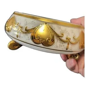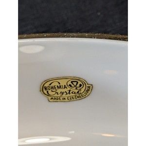 VTG Bohemian Czech Opaline Glass Bowl with Gold Motif Smoke Bowl/Candy Bowl READ