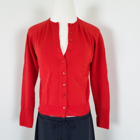 60’s Merino Wool Knit Cardigan Fitted Vintage 3/4 sleeve button down up