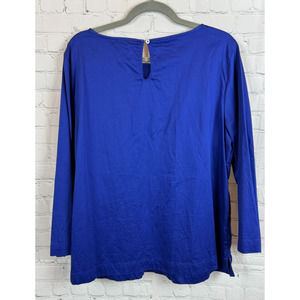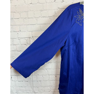 CHICO'S royal blue cotton stretch beaded top blouse tunic size 2 12 L