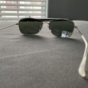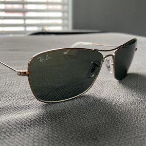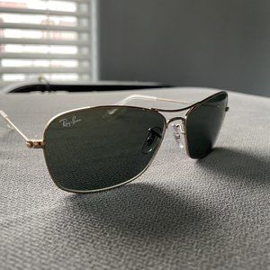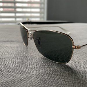These vintage 90s sunglasses have the iconic Ray-Ban Caravan lines. These sunglasses have a softer, more curved square eye shape seem brand-new. These unisex Ray-Bans, style number RB3388, feature crystal grey lenses set within gold frames. You will be extremely fortunate to be able to purchase these at a lower cost than the original as this model is no longer available. These have been slightly worn but are in almost perfect condition. They rank as among the greatest Ray-Ban aviators ever made.