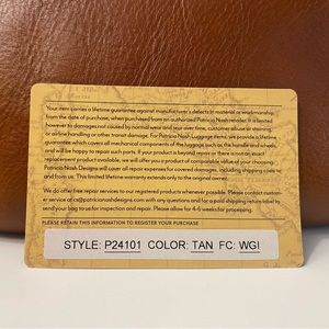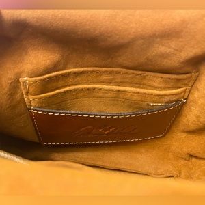 Antiqued brass hardware, soft tooled Tan leather