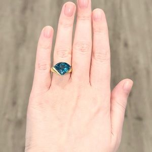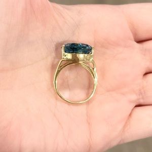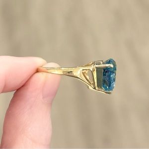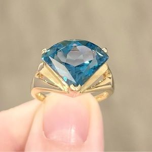 14K Large Deep Blue Topaz Swiss London triliant pie cut regal yellow gold ring