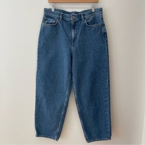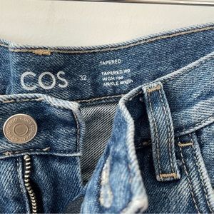 COS Arch jeans, tapered in dark blue denim. In like-new condition.