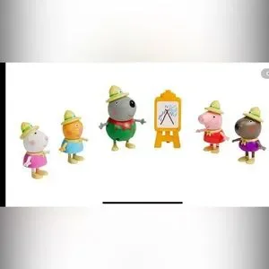 It looks as though the club leader, Mr. Wolf, has called a meeting to talk about being good campers! The Peppas Camping Friends toy includes (4) 3 scale figures of Peppa Pig and her friends (Candy Cat, Danny Dog, Suzy Sheep), a 5 scale figure of Mr. Wolf, and a colorful easel accessory. Girls and boys ages 3 and up will love to imagine all the outdoor adventures in store for Peppa and her troop!