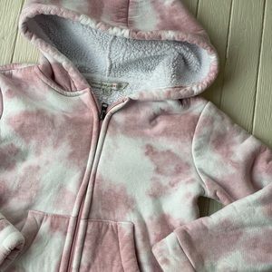 Girls Pink Marbled Sherpa-like Lined Hoodie Jacket Size 7 8