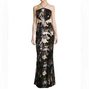 NWT Mestiza Arianna Sequined Cutout Bronze / Silver Gown Size 6