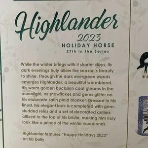 While the winter brings with it shorter days, its dark evenings truly allow the season’s beauty to shine. Through the dark, evergreen woods emerges Highlander, a beautiful warmblood. His warm golden buckskin coat gleams in the moonlight, as snowflakes and gems glitter on his elaborate satin plaid blanket. Dressed in his finest, his elegant look is completed with gem-studded reins, making him truly look like a prince of the winter woodlands.