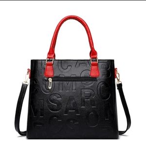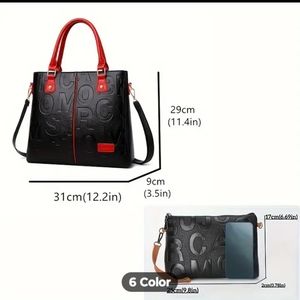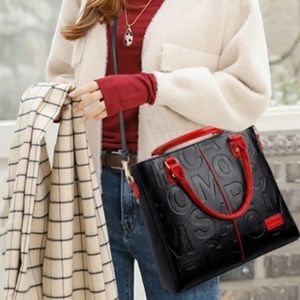 NEW Tote Bag Letter Faux RED & BLACK Leather Hobo Handbag & matching Clutch