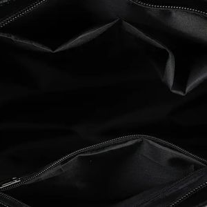 HANDBAG: BACK ZIPPER POCKET. ZIPPER TOP. Black interior lining. Interior Zipper & 2 open pockets. 13" W x 11" T x 3" D. DETACHABLE CROSSBODY STRAP
